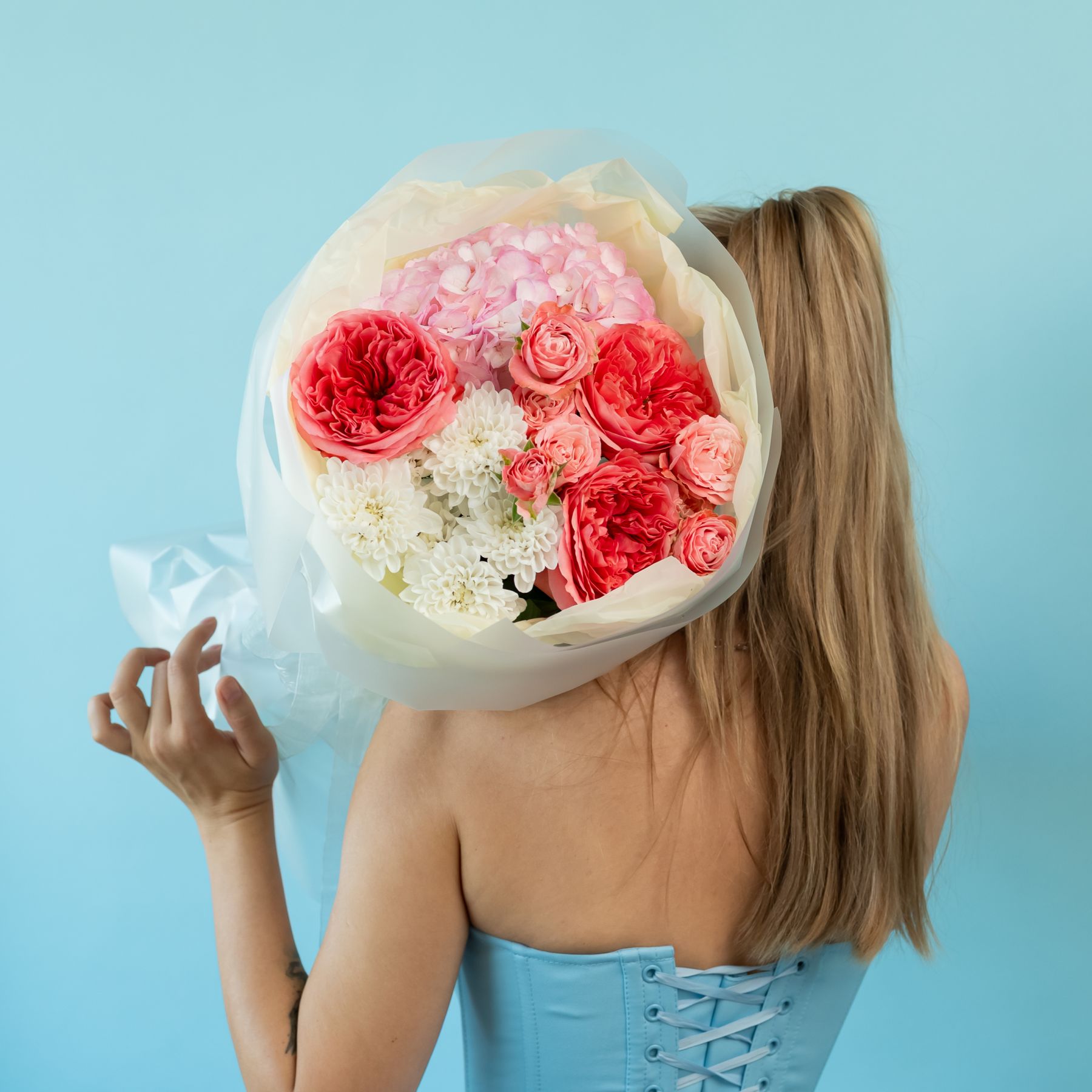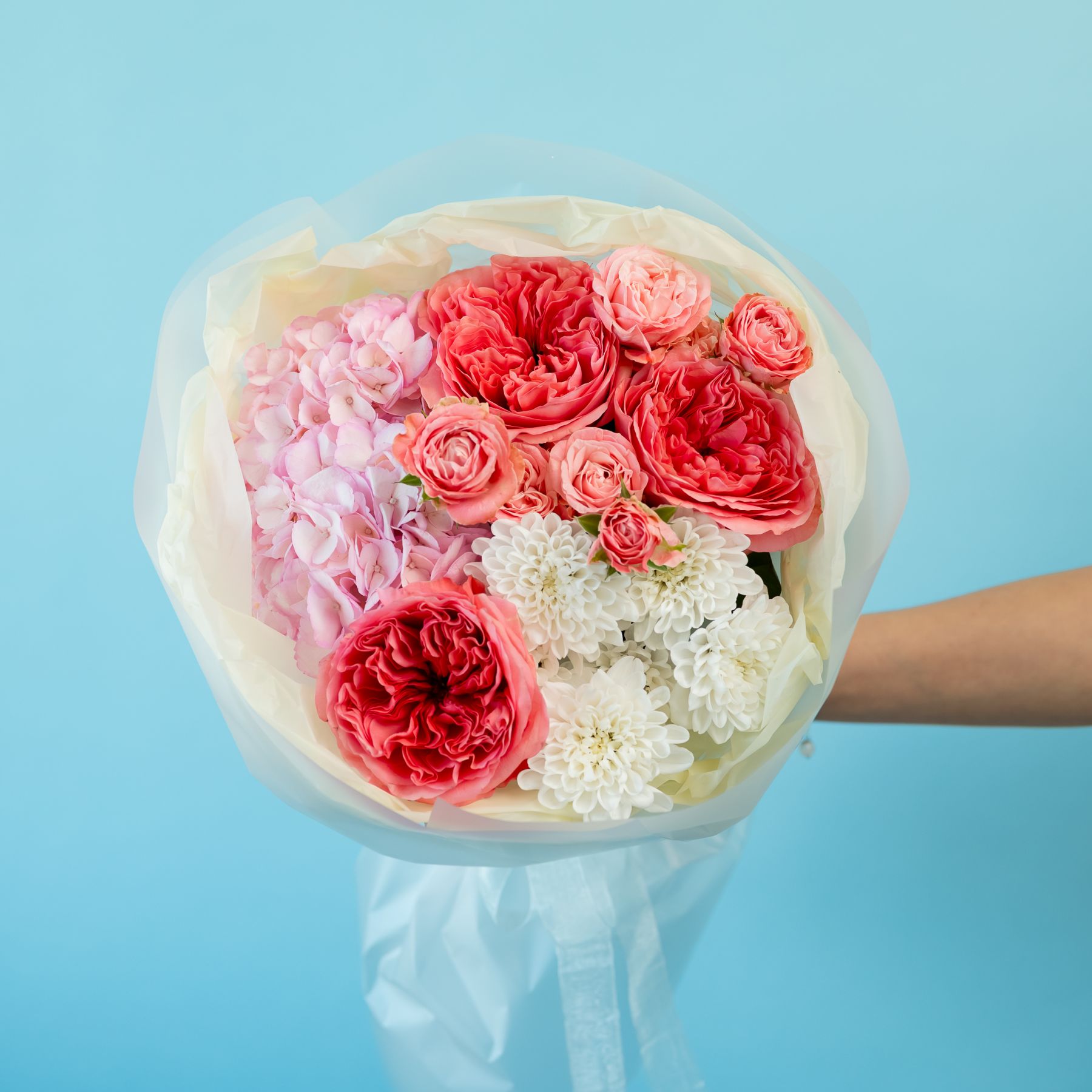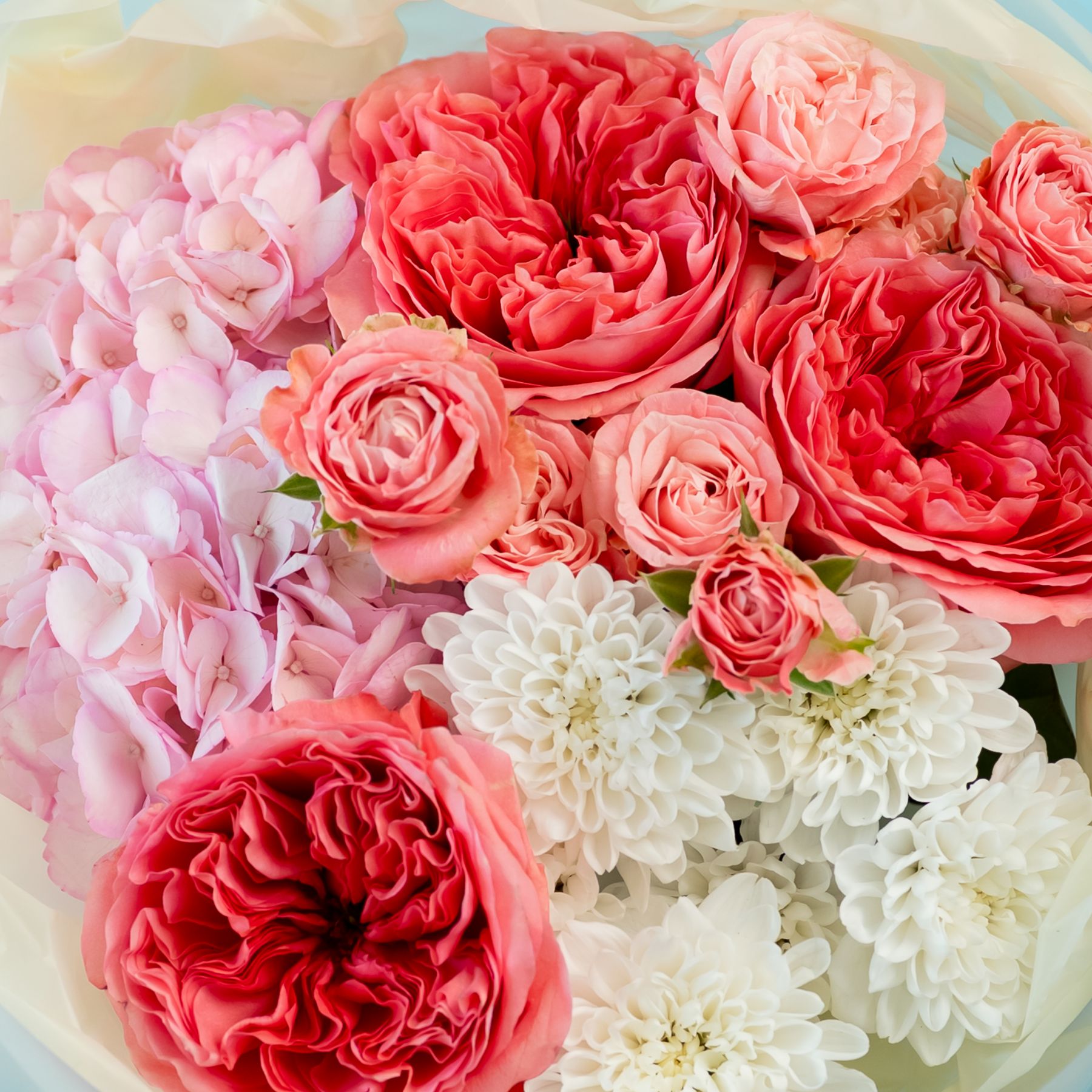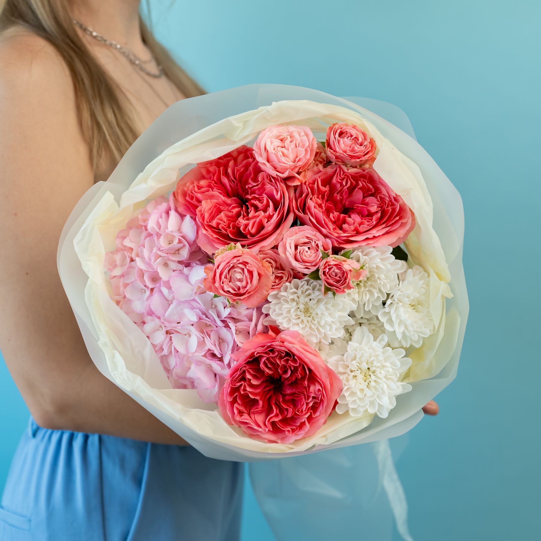 Сборный с пионовидными розами